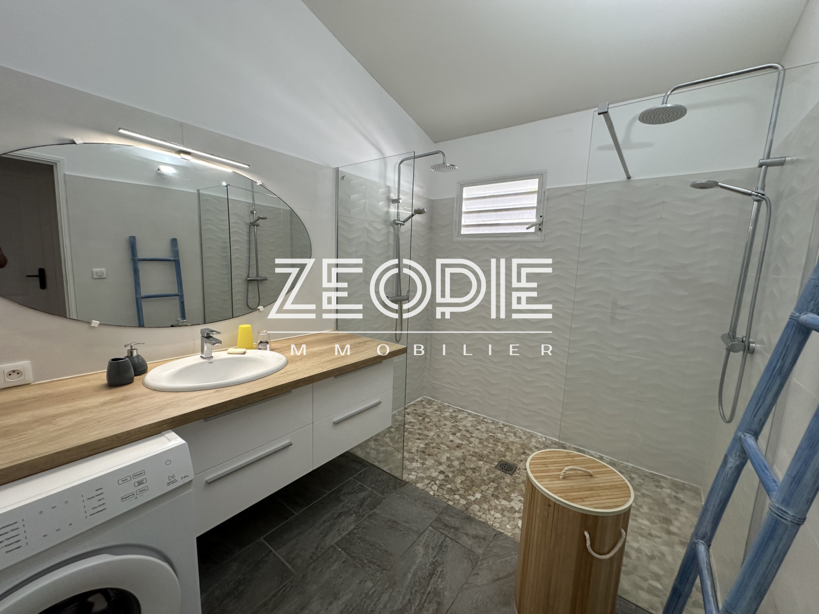 Votre agence ZEOPIE Immobilier Saint-François vous propose cette villa béton et bois de 110m² environ construite sur un terrain de 600 m² environ.