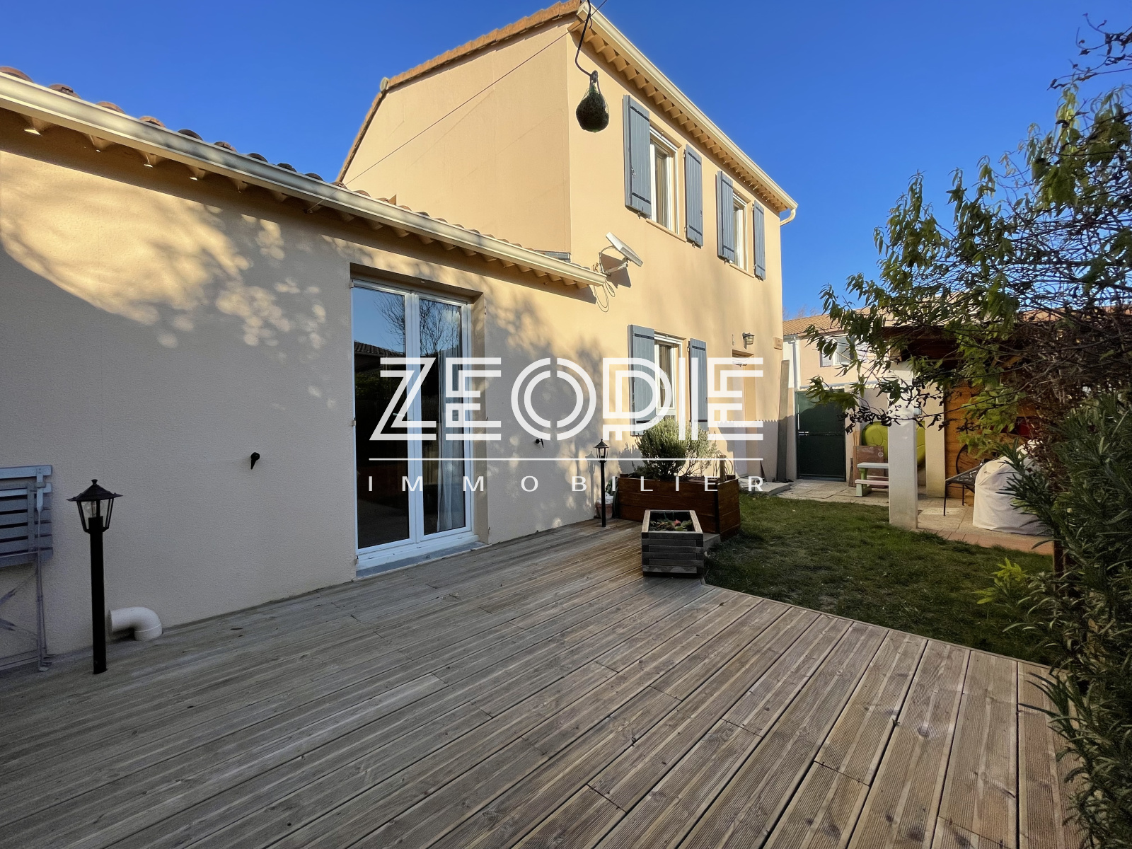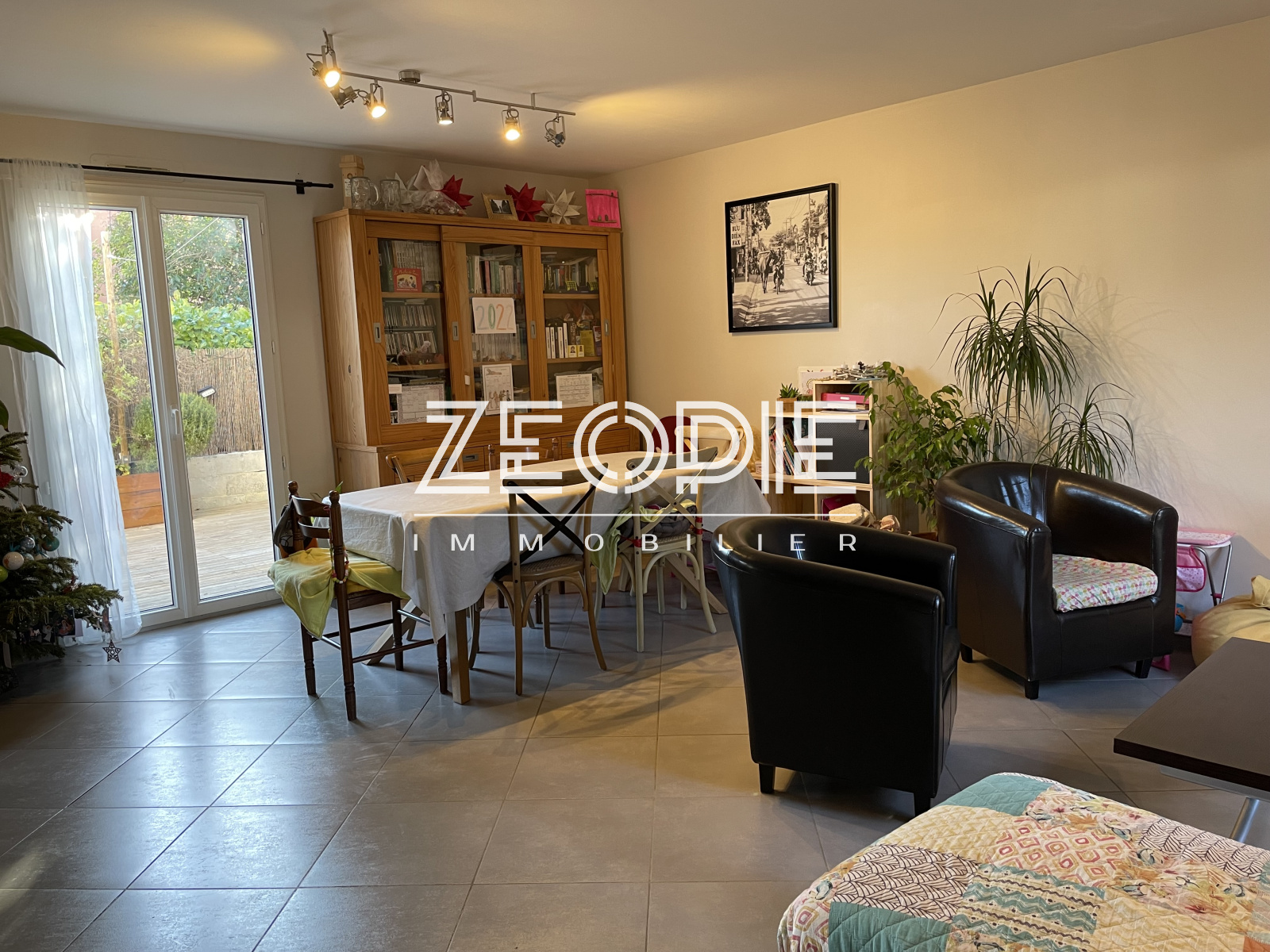 Maison d'environ 96 m² comprenant 3 chambres, 1 séjour ouvert sur une grande cuisine entièrement équipée, 1 jardin et 1 garage.