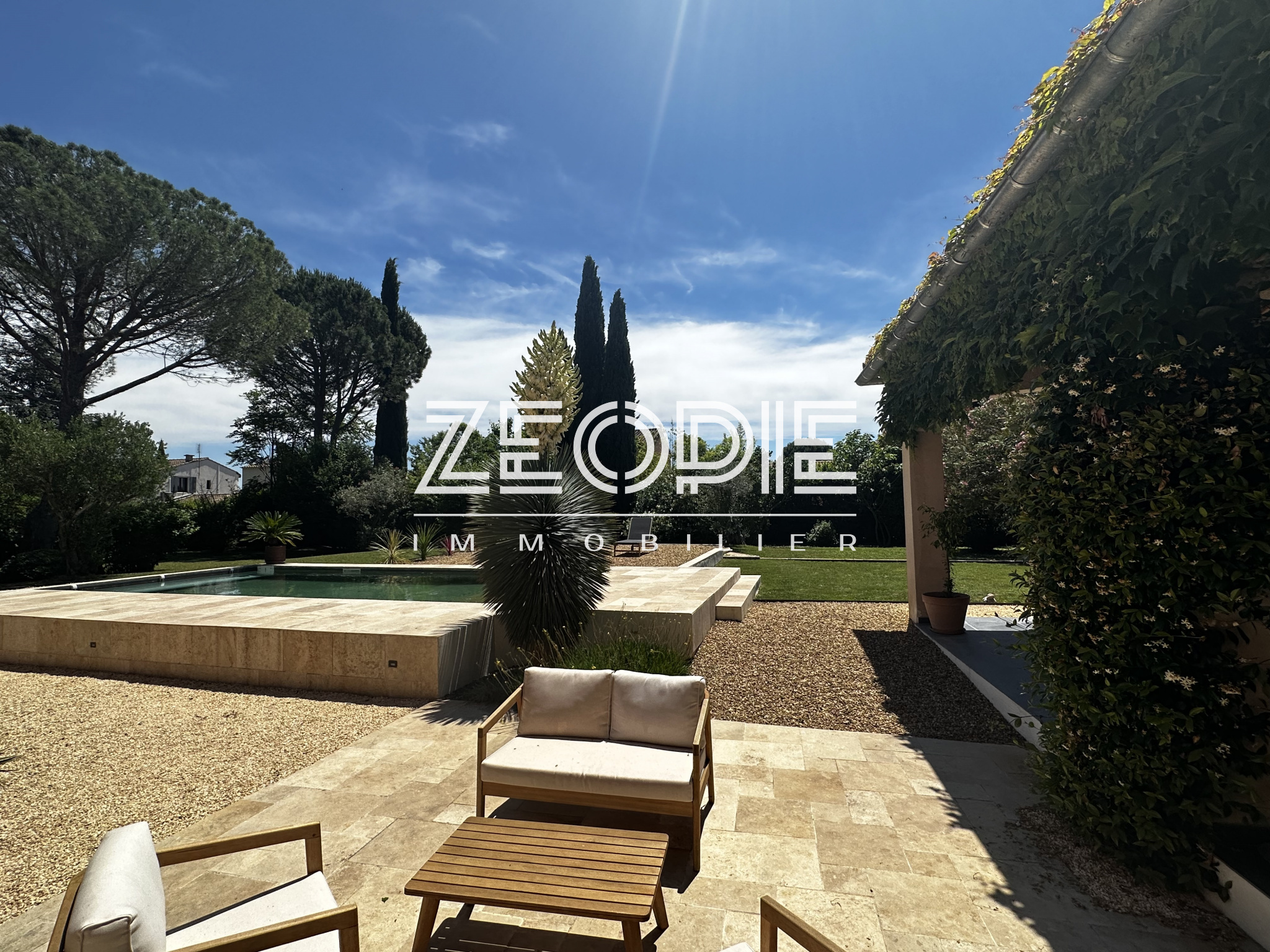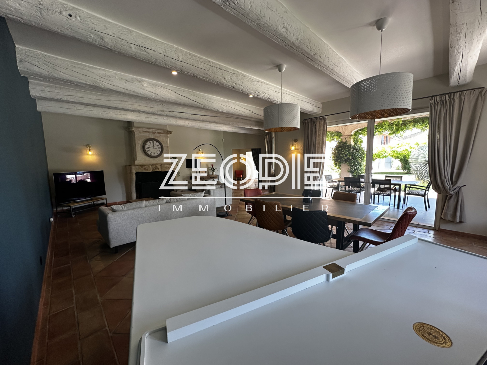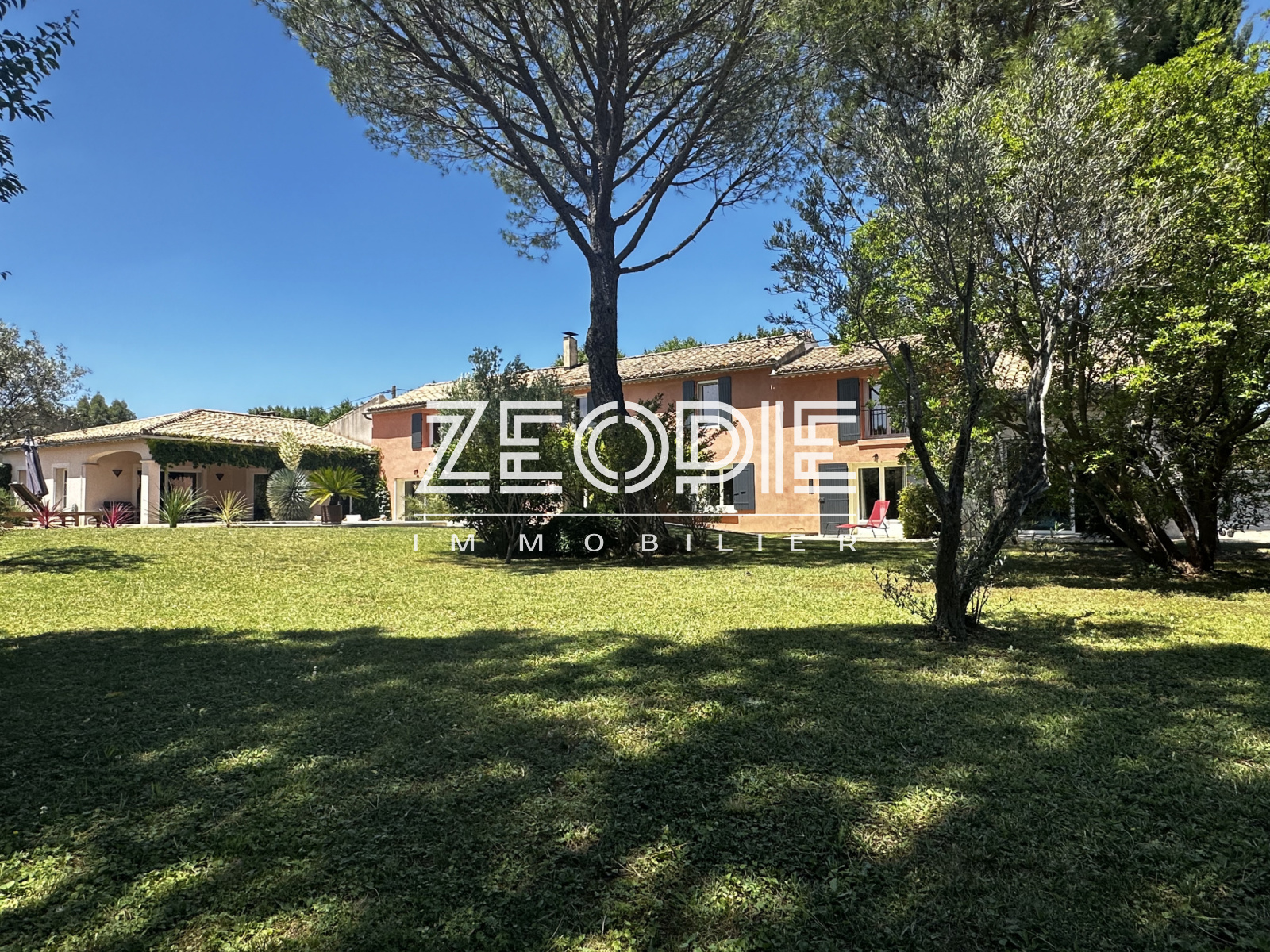 Ce mas ancien non mitoyen élevé d’un étage sur Rez de chaussé est implanté sur un jardin clos et paysage de 2000m2. Situé au calme et sans nuisance malgré sa proximité des commerces et du centre ville, ce mas ancien de 310 m2 habitables environ se compose en rez de chaussé d’un grand hall d’entrée avec placards, d’un salon / Sam de plus de 60m2 avec cheminée en pierre, d’une grande cuisine de 20m2 environ entièrement équipée et rénovée avec 2 arrières cuisine / buanderie pour le stockage et les machines à laver et sèche linge. Ensuite un petit salon / coin TV de 15m2 environ avec cheminée insert panoramique, un bureau de 15m2 et enfin une suite parentale de 25m2 environ avec placards, salle d’eau et WC privatif. Accès direct sur le jardin par porte fenêtre. A l’étage vous accéderez par un escalier central à 2 chambres sur votre droite, une de 16 m2 et l’autre de 25m2 environ. Ensuite de l’autre côté à l’étage 1 première chambre de 16m2 environ, une grande salle de bain de 13m2 avec double vasque, baignoire et douche à l’italienne. Enfin une 4eme chambre avec placards de 18m2 environ, un dressing aménagé de 10m2 et un WC séparé. La maison bénéficie de 3 garages, un premier de 40m2 environ avec 2 portes sectionnelles automatiques pour garer 2 véhicules, une cave à vin et un espace de rangement supplémentaire de 15m2 sous toiture. De l’autre côté de la maison un garage de 25m2 environ avec mezzanine en bois à l’étage de 15m2 environ. La maison a été rénovée très récemment, pour votre confort vous bénéficierez du double vitrage PVC KparK, d’un système de chauffage central par pompe à chaleur DAIKIN ( au sol au Rez de chaussé et radiateur alu à l’étage) + une climatisation réversible MITSUBISHI dans toute la propriété. Façades rénovées cette année, gouttières en zinc, toiture complètement rénovée également, tout à l’égout… Matériaux de qualités ( carrellage terre cuite, parquet, poutres… ) exposition plein sud, terrain de boules, arrosage automatique, forage, piscine traditionnelle chauffée de 9 mètres x 4, portail automatique, une terrasse couverte de 25m2 et une autre non couverte de 20m2. Parc arboré et clos de 2000m2 au calme et sans vis, possibilités d’agrandissements. . Possibilité d’achat meublé ou partiellement meublé.